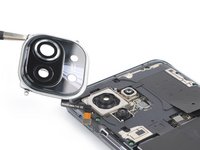 Use your fingers or a pair of tweezers to carefully lift the camera cover including the flash assembly off the camera lenses and remove it.