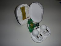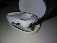 With an opening pick we will leverage the edge between the interior part in which the earphones are placed and the exterior case. We will surround entire inner part with the opening pick until it comes out.