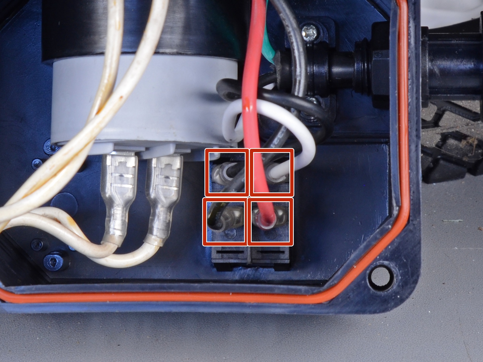 This repair requires you to work in a small space next to a large capacitor. Don’t remove the insulated wires attached to the capacitor unless you have the tools and the knowledge required to safely discharge it.