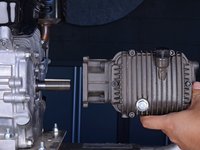 Carefully pull the pump assembly away from the engine until it de-couples from the engine axle.
