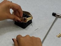 Strike the other end of the pin pusher with the metal side of the watch hammer until the pin slides out.
