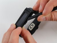 Using a spudger, lightly press upwards against one corner of the frame, then the other along the corner of the short edge.