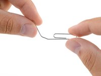 Insert the straight end of the paper clip at a 45 degree angle into the sixth hole from the left.