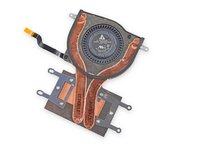 Taking a closer look at our treasure, we see a cooling system more akin to one found in a laptop than a tablet, with a heat sink that draws into the fan.