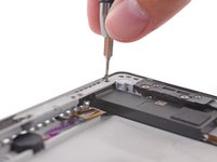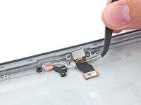 While we're storming the castle—er, display, we find something new: a springy metal bracket pinning the display connector in place. It's not the friendliest of chums, but with a little convincing from our spudger, it agrees to let the connector go.