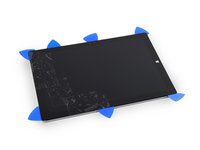 A easier way to a cracked screen is what we get for complaining about a mountain of torx screws. Thanks N-trig for that thinner glass. Maybe a "Surface-sized" iOpener bag is needed that covers the entire periphery of the screen. Something with a long flat sharp edge (like a plastic ruler) might speed up things.