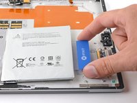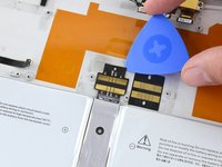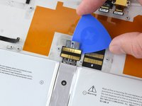 Starting at the edge furthest from the battery, slide an opening pick under the battery connector to separate the adhesive underneath.