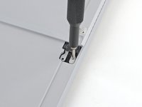To open the hinge, insert your T5 Torx screwdriver into one of the screw holes and gently pry towards the top of your device until the hinge is exposed.