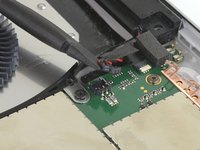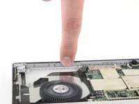 Insert the pointed end of a spudger into a screw hole in the fan shield and lift up to separate it from the fan.