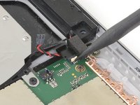 Use your tweezers to remove the two EMI shields covering the display cable connectors.