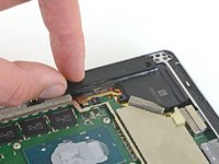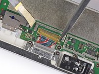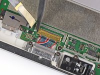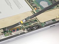 Slide the pointed end of a spudger between the speaker wires and the motherboard until it is resting against the speaker wire connector.