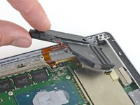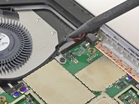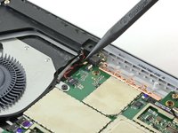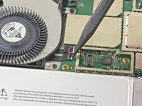 Use the pointed end of your spudger to gently slide the fan and headphone jack cables out of their ZIF connectors.