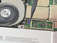 Use the tweezers to pry the EMI shield away from the motherboard as much as you can without bending it. Do not remove it yet.