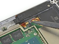 Use your tweezers to remove the two EMI shields covering the display cable connectors.