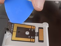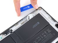 Starting at the edge closest to the battery, slide an opening pick under the battery connector to separate the adhesive underneath.
