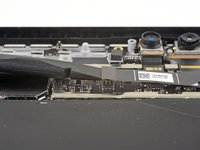 Use the flat end of a spudger to pry the rear-facing camera connector up and out of its socket on the motherboard.