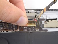 Use the flat end of a spudger to pry the display interconnect cable straight up and out of its socket on the board.