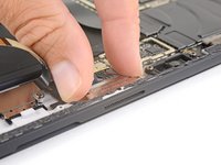 Rotate the pick toward the bottom of the Surface to slide it underneath the lower edge of the speaker cutout.