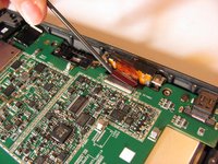 Using tweezers, gently pull the eight orange ribbon cables from their sockets.
