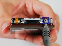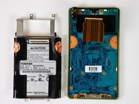 The 30 GB hard drive is attached to the logic board. The battery should be removed before any more disassembling of the Zune is to take place.