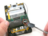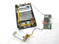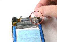 Carefully lift up the mother board located at the base of the Zune. Unclip the orange ribbon cable in the same manner as in the previous steps.