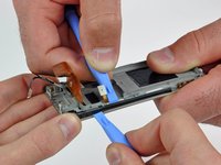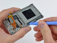 Use a Zune opening tool to peel the digitizer and display ribbon cables off the foam tape securing them to the inner chassis.