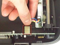 Locate the stepper motor. With the front of the scanner facing you, the motor is located at the top left.