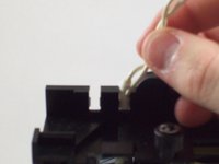 Lift up the black piece of plastic the bulb is attached to from the left hand side until it is perpendicular with the bottom lid of the scanner.