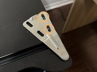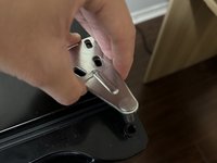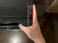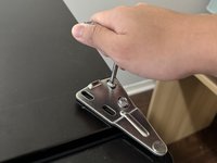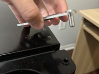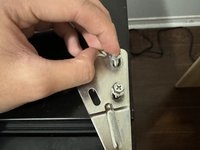 Use your hand to align the door so these three screw holes stay on the same line.
