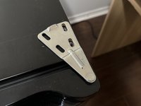 Carefully place the top hinge to fit these holes.