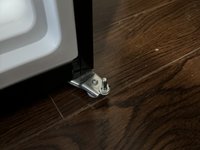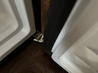 Using two hands, gently place the door on top of the hinge (the pointy part of the hinge should fit inside the hole).