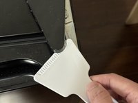 Use a plastic spatula to remove the hinge cover on top of the freezer.
