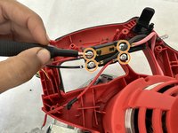 Remove four 10 mm screws that attach the wires to the trigger using a Phillips #2 screwdriver.
