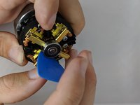 • Insert the opening pick between one of the carbon brushes and the electric motor to help compress the spring.