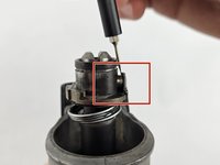 To replace the torsion spring, use the flathead to pry the retaining pin beneath its square head.
