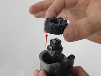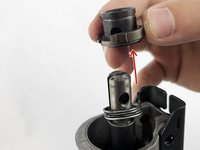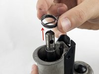 Using a flathead screwdriver, insert the head of the driver vertically and twist clockwise to pry the retaining snap ring open and off the blade clamp assembly.