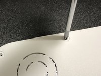 Remove carefully the six rubber feets from the housing with a tweezer.