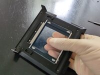 Dissemble the negative carrier by unscrewing it at the hinge