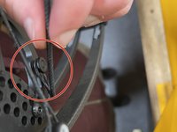 Slowly compress the bow press until the string has some slack, as shown in the picture.