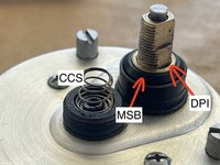 Remove main shaft bearing, MSB, drag pressure insert, DPI, drag washers, dw1, dw2, and drag spring washer, dsw.
