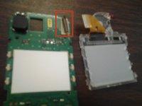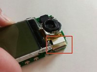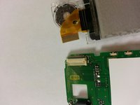 Remove the attached ribbon from the circuit board by prying open the gray plastic clip at the top right of the circuit board.