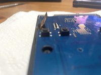 Remove the motherboard from the front housing. There may be some adhesive preventing you from pulling the motherboard out, but you can still remove the board by carefully pulling from the edges.