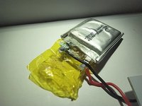 Using a knife, I cut the post flush with the base. Now there is 15mm more battery space. Cool. Searching for a battery, I found a 302040 unit. It has 300mAh capacity and fits perfectly. Hopefully, the charging controller won't be against it. To be continued...