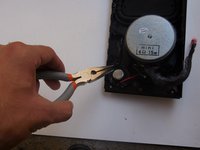 Remove the black putty from the speaker wires at both ends of the speaker board.
