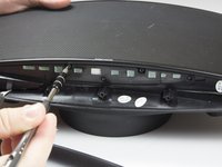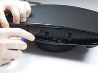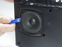Flip speaker around and use a plastic opening tool to remove the top panel from the speaker.