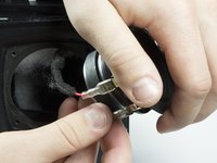 Use a spudger to break the remaining adhesive holding the grille to the speaker body.