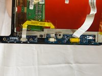 Pull the brown tabs to disconnect the white ribbon cable on the other side.
