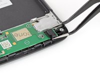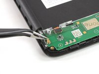 • Use a pair of tweezers to pull the power and volume button flex cable out of the ZIF connector.
