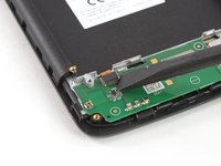 • Use a pair of tweezers to peel the adhesive tape off the left side where the antenna cable runs and fold it out of the way.