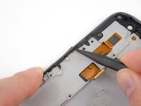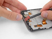 Using the flat of your spudger, pry up on the upper right edge of the earpiece speaker to separate it from the frame.